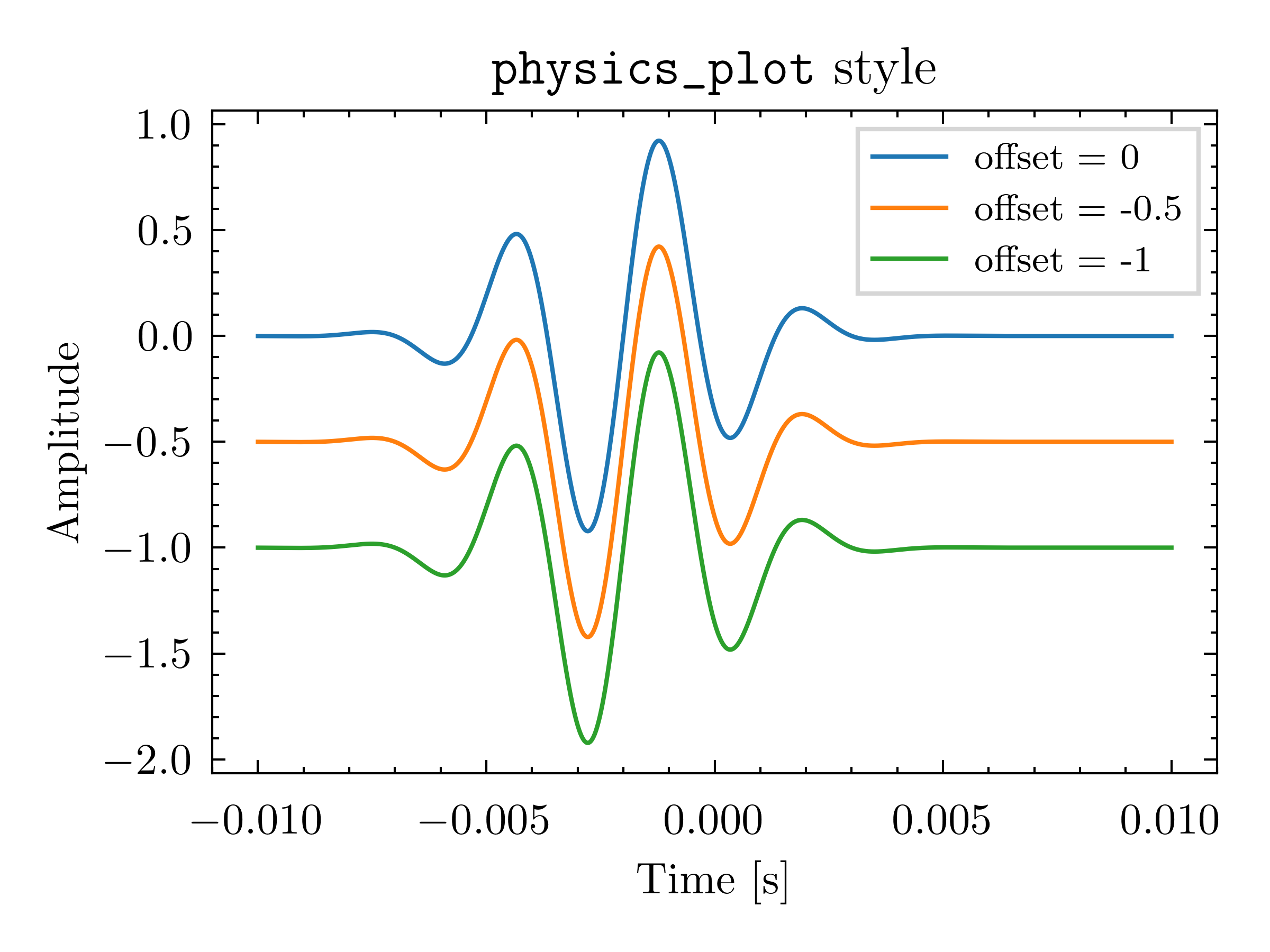 Here's a side-by-side comparison of plotting with the physics-plot style and the Matplotlib default style: